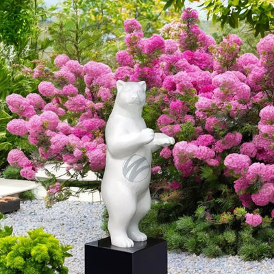 2M White FRP Standing Bear Sculpture – Elegant Outdoor Decor for Commercial and Residential Spaces