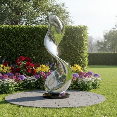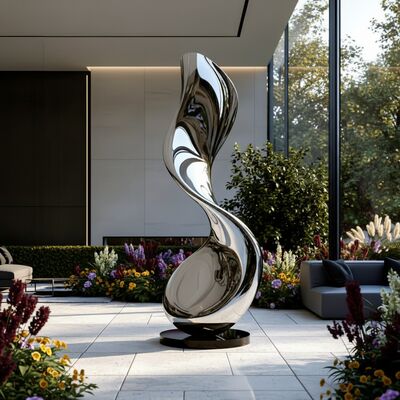 This towering spiral sculpture, crafted from high-grade 304/316 stainless steel with a flawless mirror polish, captures and reflects its surroundings — turning sunlight, greenery, and sky into living canvas. Its fluid, organic curves evoke motion and grace, making it a mesmerizing centerpiece in any setting. Ideal for landscape designers, hotel developers, private collectors, and public art installations. Custom heights and finishes available upon request.